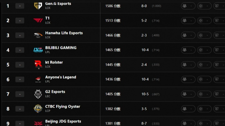 拳头世界战队实力排名:HLE第三高于BLG TES第十高于BFX
