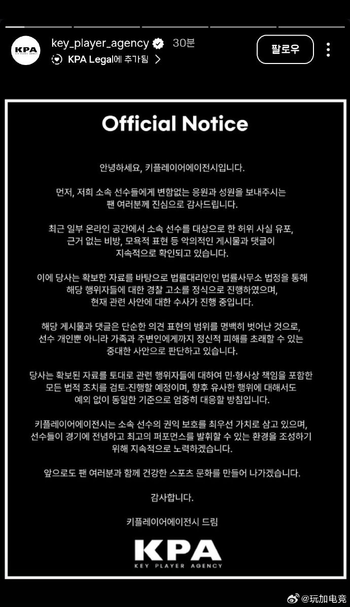 Key Player Agency 始终将保护旗下选手的权益放在首位,为了让选手能全身心投入赛事、发挥最佳状态,我们将持续为此努力。
