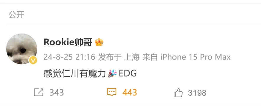 并且由于此次又是在仁川夺冠,18年曾代表IG在仁川S8夺冠的Rookie也特意发文祝贺:感觉仁川有魔力 恭喜EDG!