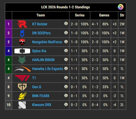 LCK目前4队并列第四!DK横扫KRX排名上升至前四