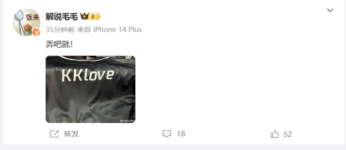 毛毛是姿态队的ADC,他的队服为“KKlove”,其中KK指的是是他女朋友K神。